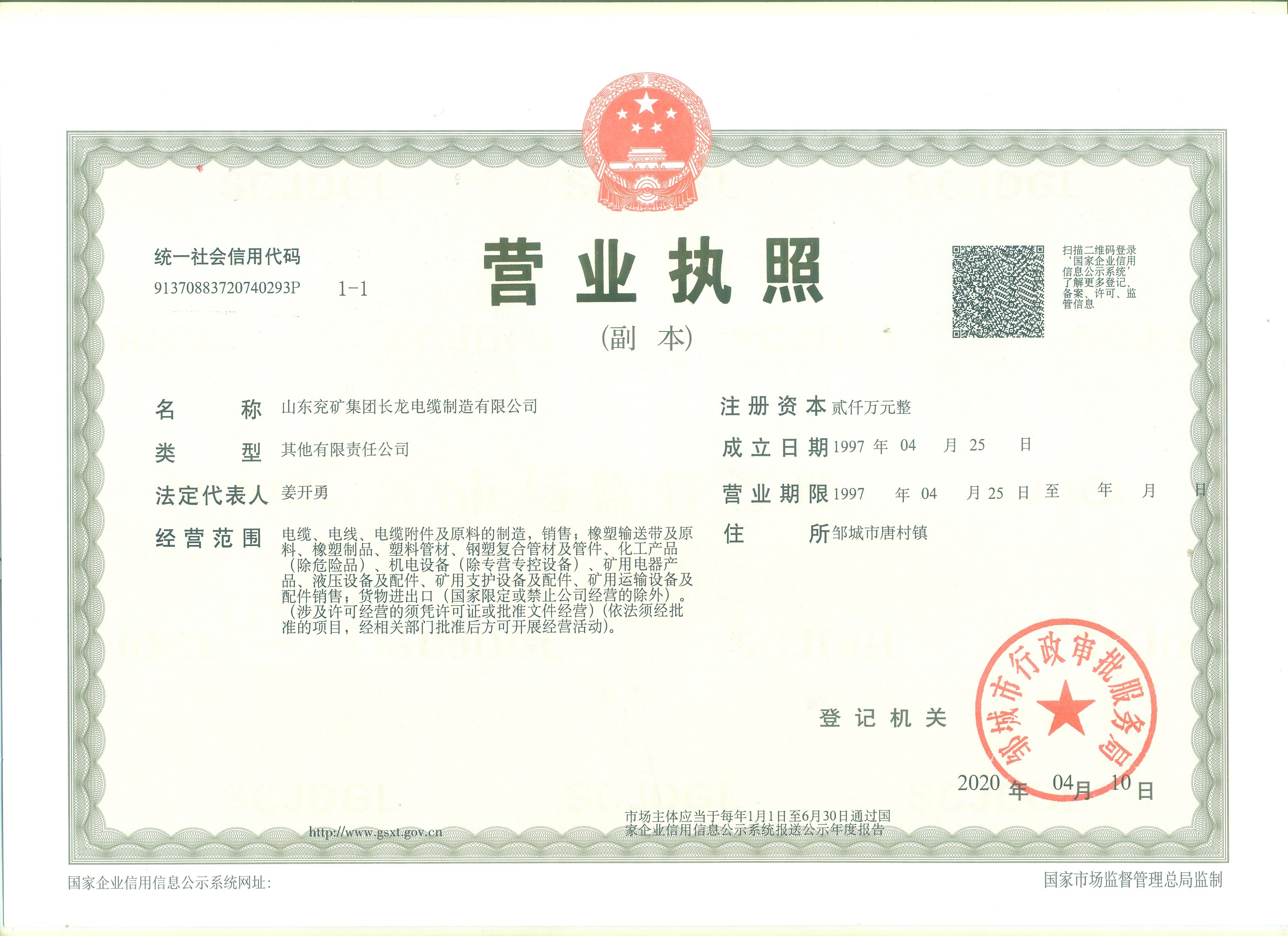 山东兖矿集团长龙电缆制造有限公司竭诚欢迎国内外各界朋友光临指导、考察、合作!